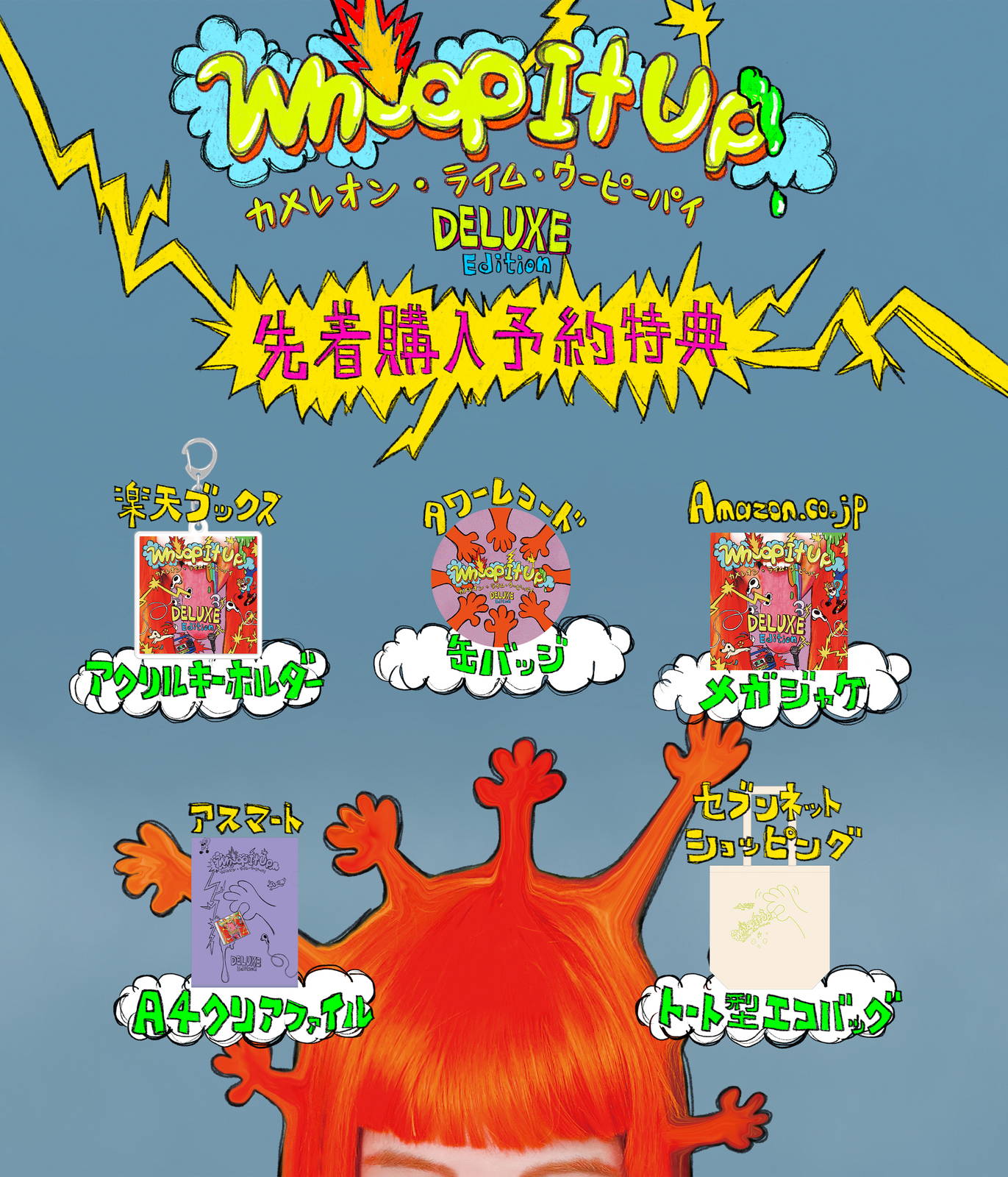 また、新曲「Give in」が収録される、11月19日(水)にリリースのアルバム『Whoop It Up “DELUXE Edition”』は、現在CDの予約を受け付けているが、メンバーがデザインを手掛けたCDショップ先着予約購入特典のデザインも本日公開。対象のCDショップより予約購入した人には、先着予約購入特典もある。