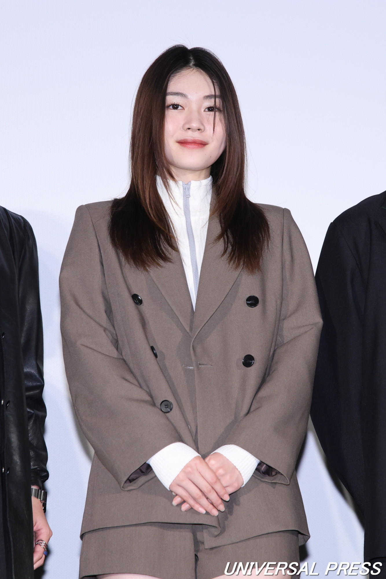 滝澤エリカは「牧優佳⾥役を演じました。本日はご来場いただきありがとうございます。短い時間ですが最後まで楽しんで行ってください」とネイティブレベルの英語も交えて挨拶。司会者から、自身の役をどのような女の子として捉えて演じたか問われ「優佳⾥は父が単身赴任、母が看護師、妹が中学校受験生という、非常に多忙な家庭に身を置いています。家族から冷たくされているわけではないものの、家庭内では孤独を感じていて居場所がないと感じている女の子です。生活に対してモヤモヤを抱えている思春期の中学生として役を捉えていました」と自身の演じた役について説明した。