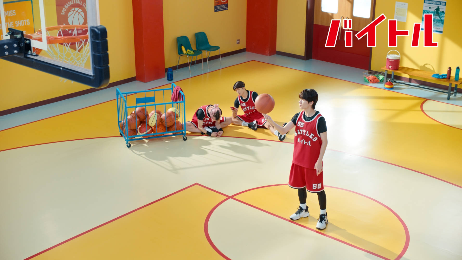 新TVCMでは、アルバイトに安定を求める人、自分に合う仕事を見つけたい人、それぞれのニーズに応える「バイトル」と「スポットバイトル」の魅力を描いた『レギュラーバイトはバイトル』篇と『好きを仕事に』篇を制作。新TVCMは2篇ともに、ユーザー世代と親和性の高いバスケットボールをしながら、自分に合う働き方や仕事探しの悩みを相談し合う日常ドラマ仕立てとなっている。働き方やアルバイト選びに悩みを抱えている役を向井、向井の悩みに共感し寄り添う役を佐久間、そんなふたりに的確な助言をする役を深澤が演じる。3人による個性豊かな熱演に注目だ!