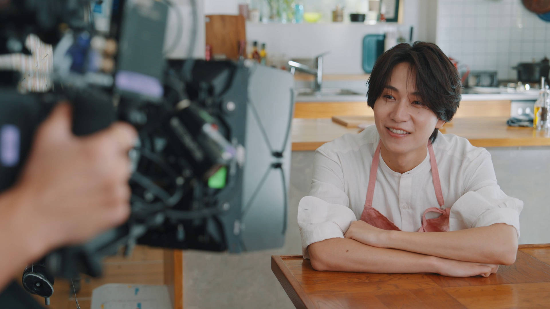 広いキッチンにエプロン姿の橋本が登場し、撮影がスタート。料理のシーンを撮影し始めると、本人から「もう一回お願いします!」とチャレンジする場面も。カットを重ねるごとにクオリティがあがっていき、流れるような手つきで調理をしてスムーズに進行した。また失敗ができない一発勝負のカットでも勝負強さを見せ、カットの合図がでると現場では自然と拍手がおきていた。