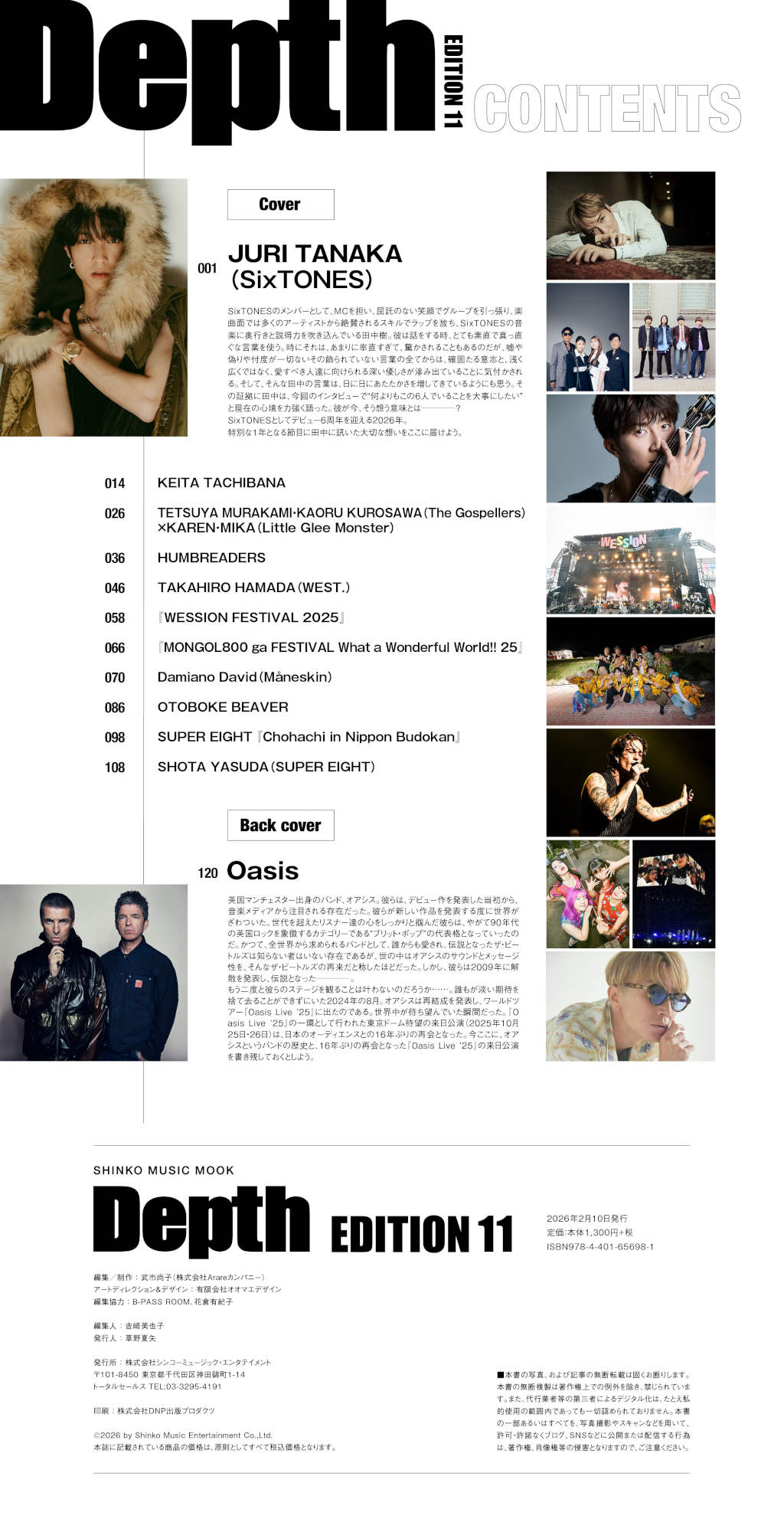 田中樹(SixTONES)が単独表紙特集を飾り、裏表紙・巻末特集にはOasisが登場する、音楽・ENTERTAINMENT専門誌『Depth EDITION 11』が2026年1月21日(水)に発売される。