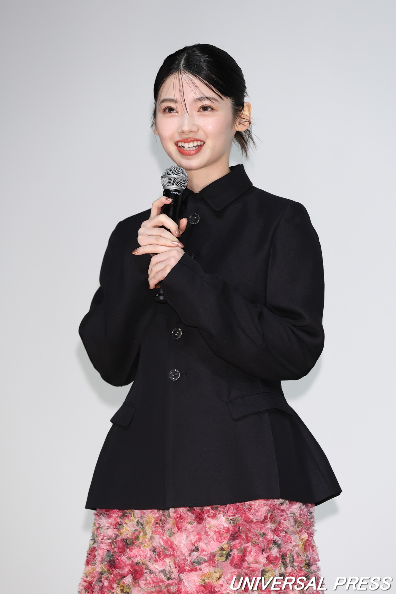 上映終了後の熱気が冷めやらぬ中、司会の奥浜レイラの呼びかけで、キャストと監督が登壇。舞台袖で拍手を聞いていたという當真あみは、「皆さんの拍手が聞こえてきて、それだけで胸がいっぱいになりました」と、感無量の表情で挨拶をスタートさせた。