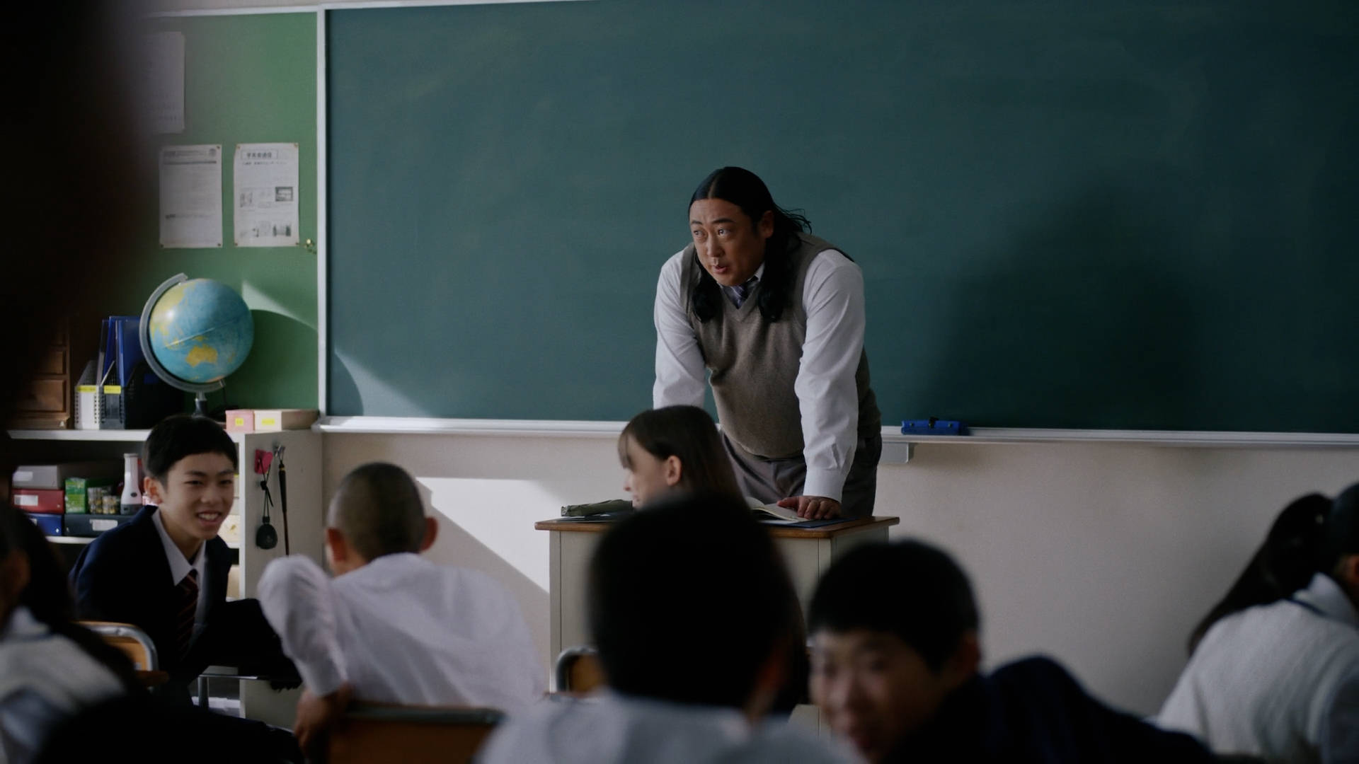また、本CMで教師役を演じているのは、お笑いトリオ「ロバート」の秋山竜次。前作に続いての出演となった秋山だが、前作とは大胆にイメージを変え、真ん中分けの長髪スタイルで教師役に。「ロン毛イコール教師というイメージが強いので、ロン毛ではあるけれど、逆にそのイメージからできるだけ離れるように、いろんな注意を払いながら演じました」と、教壇での姿勢や声色など細かな部分までこだわって役作りをした。「CMの第一声は秋山さんから始まるんです。秋山さんの空気が(CM全体を)支配しているんです」と堺も絶賛の秋山先生の演技にも注目だ!