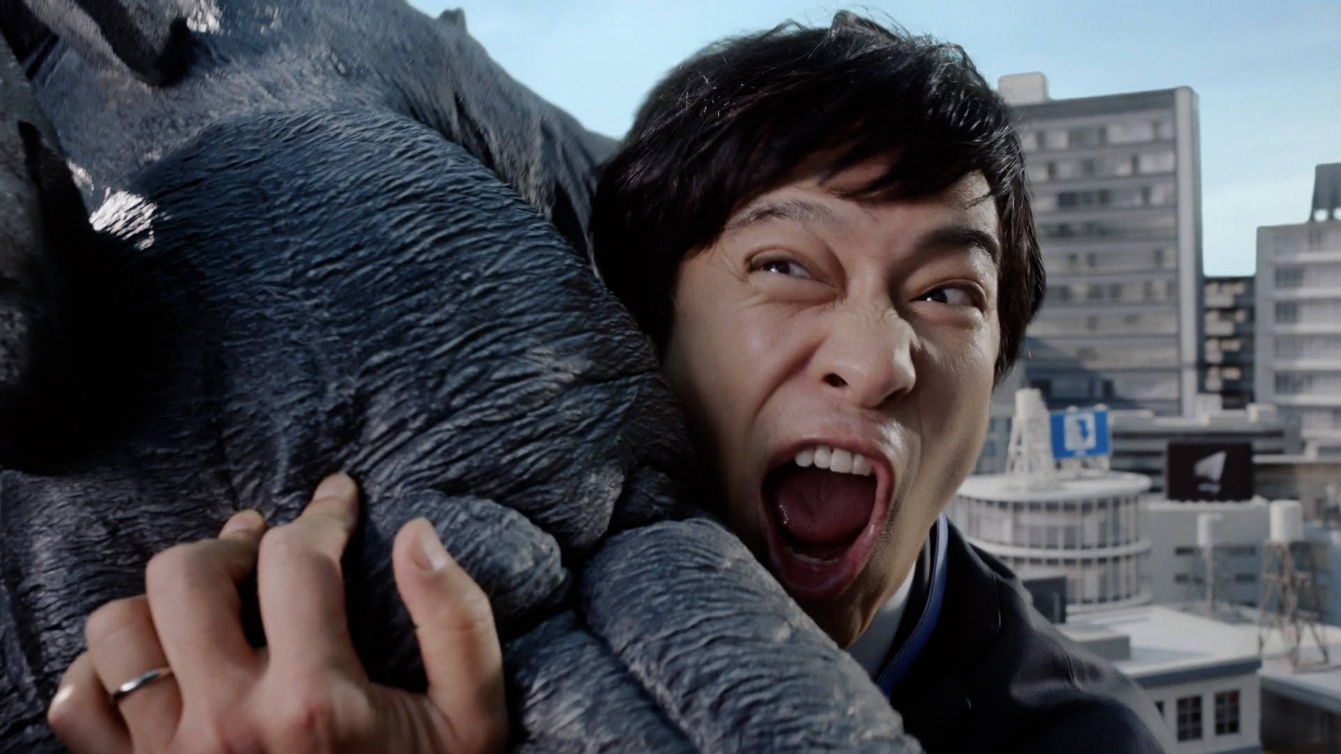 娘・家内ちかの授業参観日。教室の中は担任が「授業始めまーす」と声をかけてもざわざわと騒がしい。「意外とちっちゃ!」「どうやって巨大化するんですか?」という男子生徒の声が、自分へ向けられたものだと察した家内守は、生徒たちのざわめきが増す中、後方に並んだ保護者たちからの視線をかわすように教室を出ようとする。その時、「あのさ…」と声を上げた娘のちか。「本気で守りたいものってある?うちにはある。それが今の家。みんなでいろいろ意見を出し合って、今の家ができたの。家族の想いが詰まった家なの…」。思いがけない娘の告白に足を止め、驚きの表情を浮かべながらも、娘から目を離すことができない家内守。生徒たちはおろか、保護者たちも静まり返り、ちかの言葉に耳を傾ける。「そしてその家を命懸けで守ってくれてるの。そこの見た目のさえないパパが…」と、ちかが父親へ視線を向けると、娘の真意を悟り動揺を隠せない家内守。するとその時、響き渡るいななきとともに、街に“かいじゅう”が現れる。生徒、保護者、そして娘のちか。教室中の全員が一斉に家内守へ視線を注ぐ。皆の思いを受け取った家内守は意を決して力強く頷くと、いざ“かいじゅう”のもとへ。「コノヤロー!!」と立ち向かう家内守の表情は、いつになく勇ましく、そして自信と誇りに満ちている。