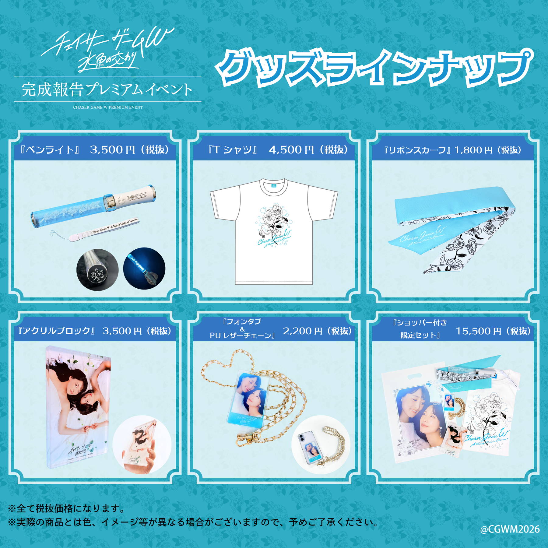 さらに、W主演の菅井友香、中村ゆりかが登壇し、3月28日(土)に開催が決定している、映画『チェイサーゲームW 水魚の交わり』完成報告プレミアムイベントのイベント内容およびグッズフルラインナップが明らかとなった。イベントでは、太田勇監督の登壇が決定し、映画完成を記念したトークをキャストとともに実施。また、事前募集による質問コーナーやプレゼント企画など、ファンが楽しめるプログラムも予定。ほかにも、様々な演出を準備しており、会場・配信それぞれで楽しめる内容が用意されている。