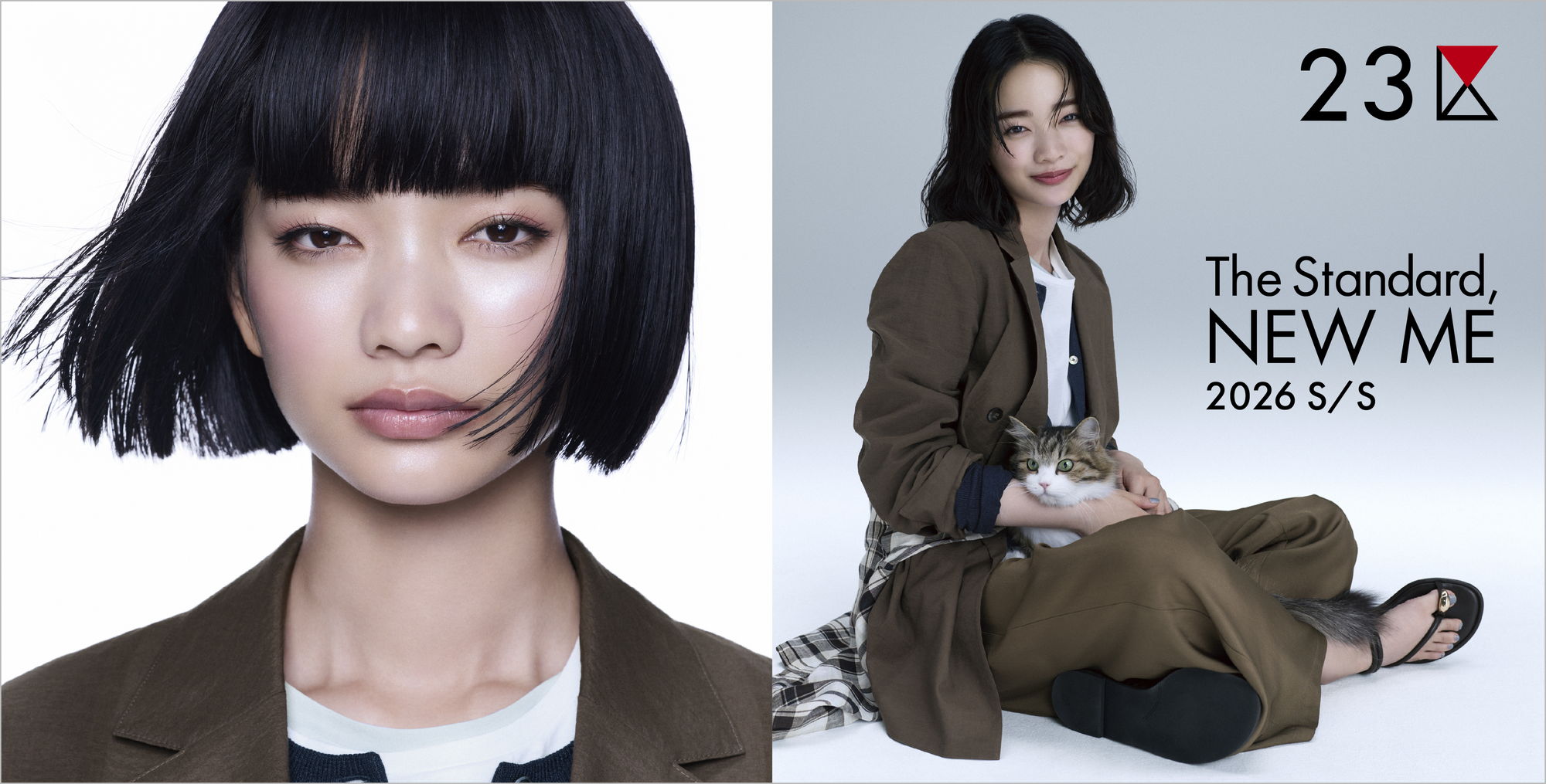 『23区』は、「THE STANDARD,NEW ME」というコンセプトのもと、世代や時代を超えて愛されるシンプルで上質な服を提案。ブランドムービーでは、スマート化、デジタル化、そしてAI革命が一層加速する昨今において、進化していくことと、変わらない人間らしいあたたかさを持ち続けること、そのどちらもがこれからの時代に欠かせない価値であると考え、2026年春夏シーズンは、いつもより刺激的なスタイルに身を包んだときに垣間見える、自信や気品、優美さといった側面にフォーカス。「Cool」と「Cute」、異なる印象のスタイルで登場する見上の姿を通して、人々が持つ「進化していく美しさ」と「普遍的な美しさ」の二面性を表現した。