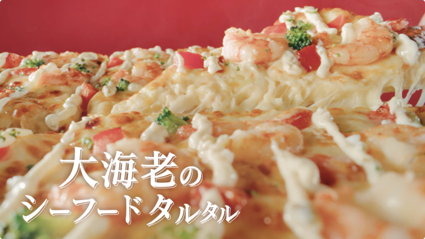 「プライムガーリックビーフ」は醤油とニンニクを効かせた食べ応え抜群の牛バラ肉に、ガーリックオイルをまとわせたブラウンマッシュルーム・ダイスオニオン・赤パプリカと、フレッシュな野菜にこだわるピザーラならではのトッピングを合わせ、ビーフの旨みをゴージャスにピザに昇華させた一品。「大海老のシーフードタルタル」はみんな大好きタルタルソースで大海老を味わうシーフードピザ。添えられたフレッシュなレモンがさわやかさをプラスする。