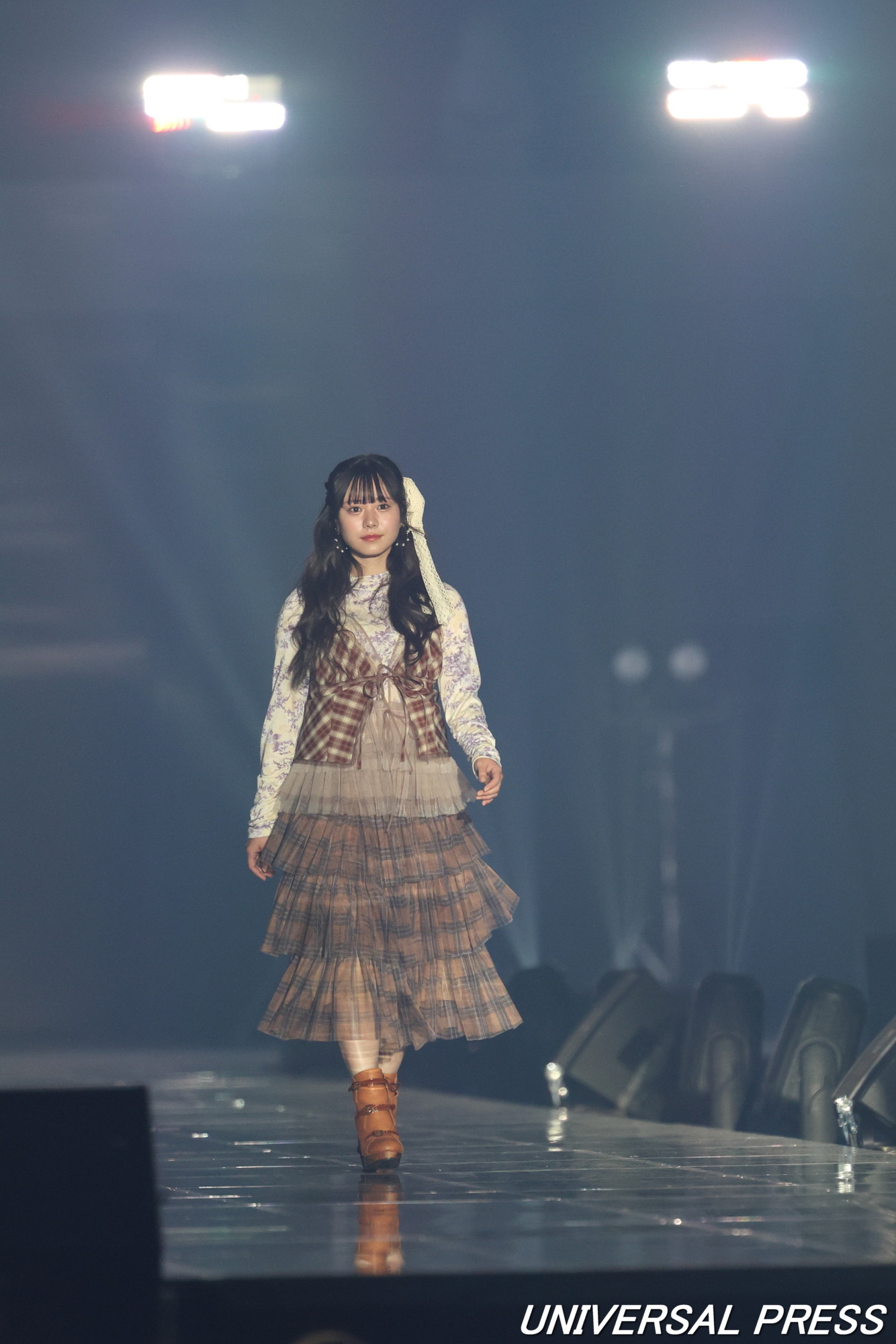 仲村はIDOL RUNWAY COLLECTIONコンセプトステージに登場。柄物×柄物の難しいコーデを可憐に着こなした。