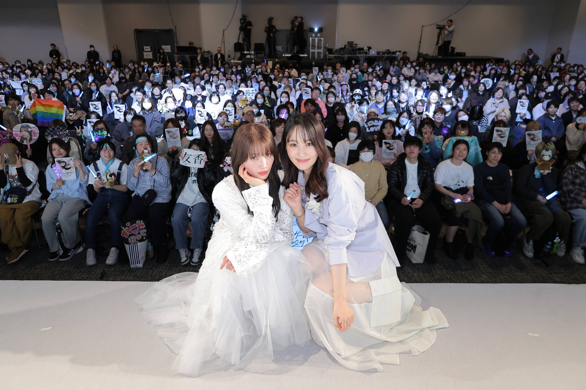 二人はイベントグッズのTシャツ、リボンスカーフを身に着けて観客席を練り歩いて舞台に登壇。会場はファンの熱気に包まれ、グッズのペンライトで彩られた光景に、キャスト陣も思わず笑顔を見せ、終始和やかな雰囲気の中でイベントが進行した。2週間前の取材で久しぶりに再会したという二人。「久しぶりに会っても、変わらない空気感が心地いい」と菅井友香は語り、ともに作品を作り上げてきた2人ならではの、不思議なほど自然なやり取りが会場全体を和ませた。
