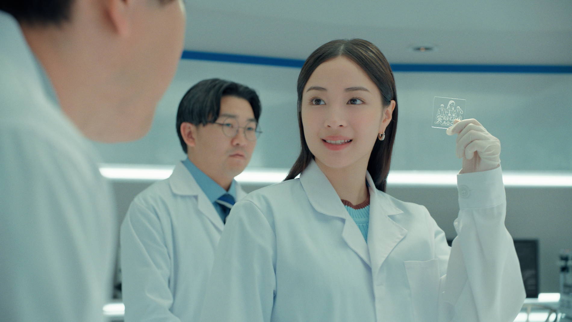新CM『実験するぞ!AGC』シリーズでは、女優の広瀬すずに加えて、昨年に引き続き、人気お笑い芸人のオズワルドが出演。広瀬すず先生とオズワルドの二人の助手が、AGCに派遣された科学者として様々な素材を実際に試し、その凄さをリアルに証明。実験を通して明らかになるAGCの素材の凄さや、実験に挑む広瀬すずとオズワルドのリアクション、共演2年目でさらに息ぴったりの三人が披露するダンスに注目だ!今回の素材は、ガラスメーカーとしての技術力を活かし、薄い板ガラス基板に対して、微細な穴を狭い間隔であけることができるAGCの「ガラスコア」。無数の穴が集まって絵になっているという驚きの事実に、三人のリアクションも止まらず、コミカルな動きとともに「穴小っさ!!!」というセリフも飛び出す。