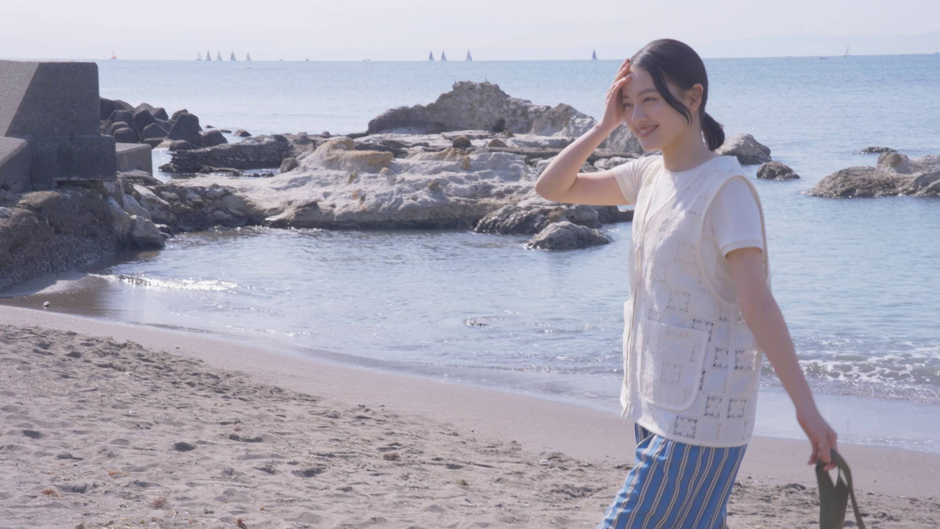 上坂:今日は海で撮影したんですが、天気にも恵まれて、途中カメラを忘れてしまうくらいにリラックスして撮影できてとても楽しかったです。