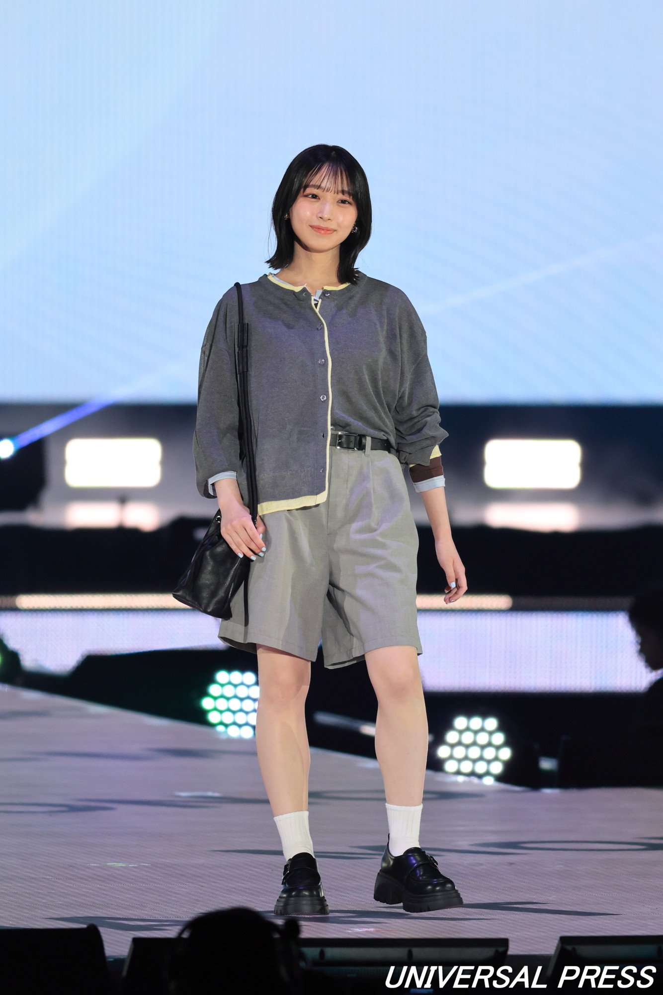 2025年に日向坂46加入後、約1年で16thシングル『クリフハンガー』でセンターポジションに抜擢された大野愛実。この日のランウェイでは若年層から高い支持を得ていて「ベーシック+MODE」をコンセプトにトレンドを取り入れたMONO-MARTのステージに登場。